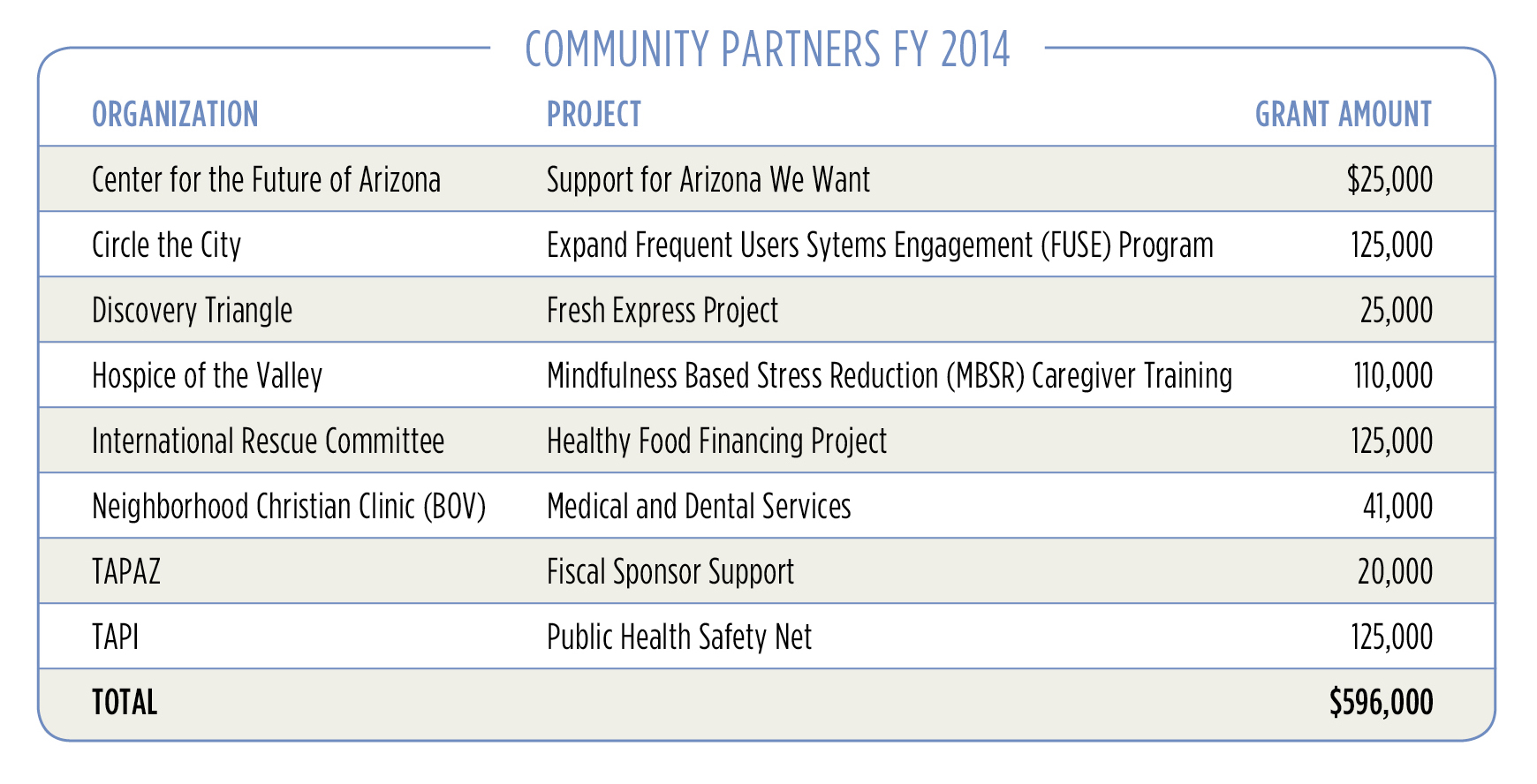 SLHI awarded $596,000 in new Community Partnership Grants in FY2014, in addition to continuing payouts on multi-year grants from previous fiscal years. Click the image below to view the organizations, projects and grant amounts.